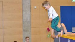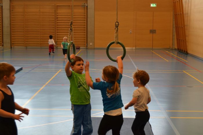 « Zurück zur ÜbersichtEinmal wöchentlich besuchen wir die Turnhalle. Allen Kindern und Betreuerinnen macht der Turnhallenbesuch einen riesen Spass.